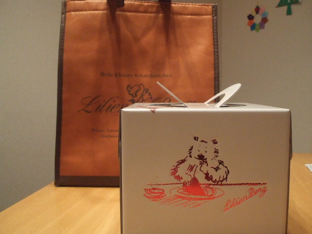 もう箱に入ったケーキを受け取ります。