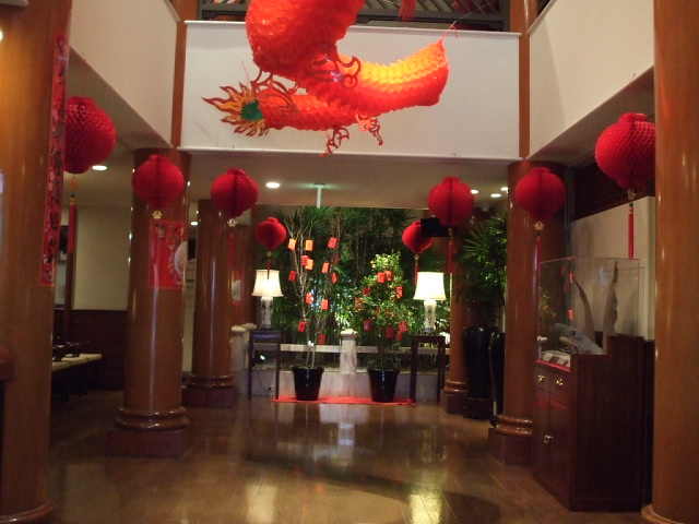 誰もいなかった聘珍樓のエントランスにも、お食事待ちの