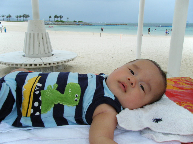 腰の座らない赤ちゃんは、正直海は辛いですね~